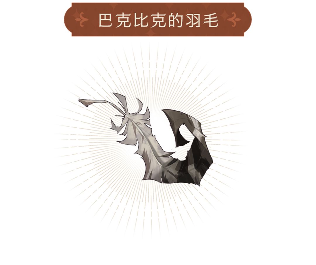 这根羽毛来自鹰头马身有翼兽巴克比克。它们生性骄傲,但会坚决保护信任的人,巴克比克曾在天文塔大战中攻击斯内普,以保护哈利·波特不受伤害。