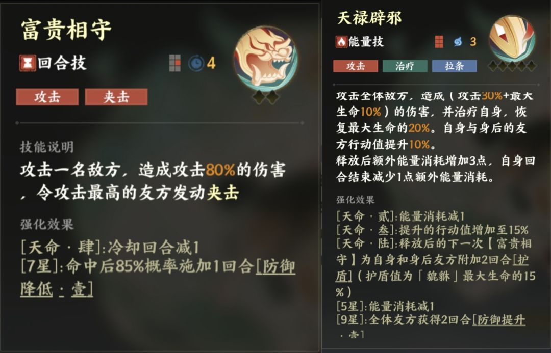 大招小砍了睡眠概率,增加了1次免控。优势是回合技1级攻击去和地藏/孟婆的2级攻击叠加。平民等歪即可,后续高星可替换貔貅。