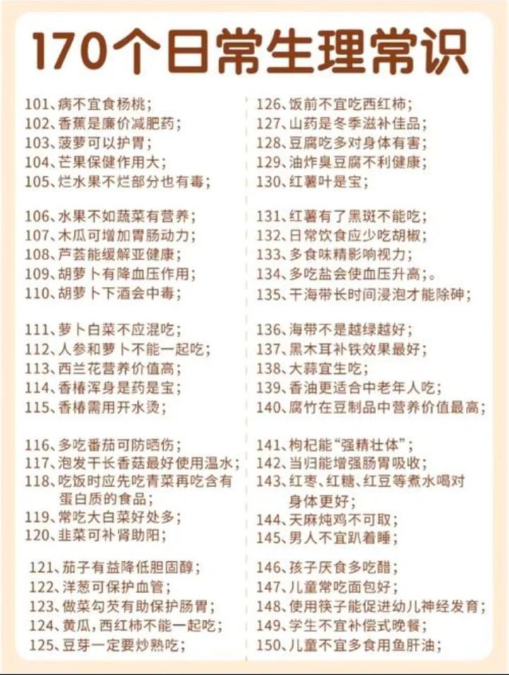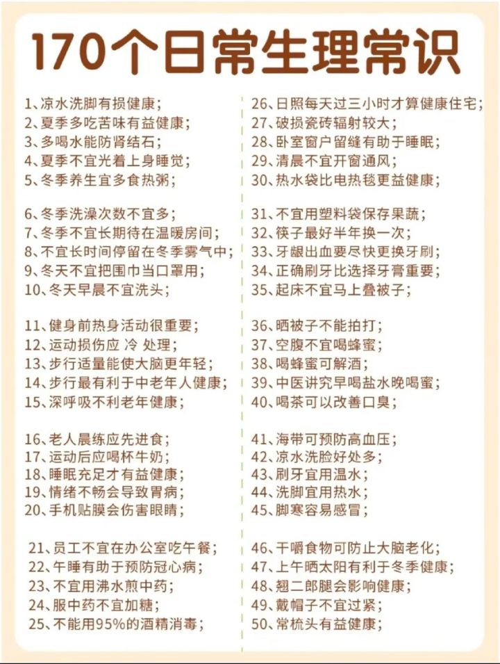 你想更了解自己的身体吗❓,那就快来看看这170个生理常识吧❗
