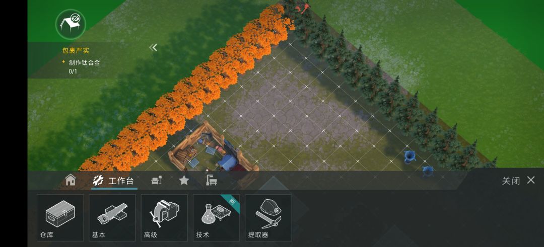 周围种满橡树和普通树 还有树篱(树篱没种满)车库+五个小家具