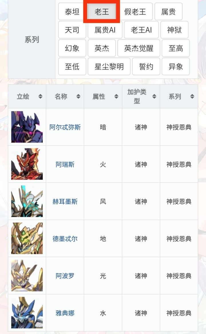 主位第一个:本属性【诸神/老王】(没有就泰坦)