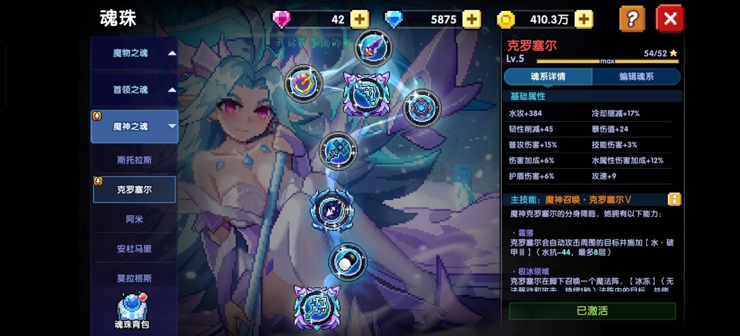 散搭游辅的魂系是【克罗魂系】携带的是【薇帕魂珠】【薇帕魂珠通用效果:水攻大于1200会使敌方受到水属性伤害提升9%】