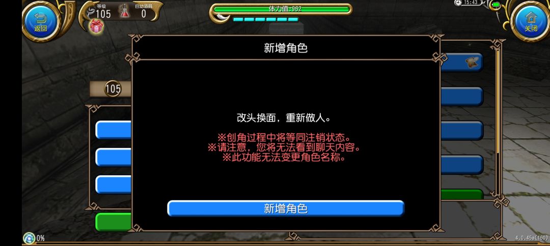 在这里已经到第七章了,我们可以在这时创建新的角色(当然随时都能创建),在第七章刚开始创建角色目的是继承剧情,这样之后的角色要跑剧情可以不用再重跑前面的六章,因为前六章跑起来太过麻烦,给的经验也并没有很多,从第七章或者第八章开始跑剧情可以节约很多跑剧情任务的时间