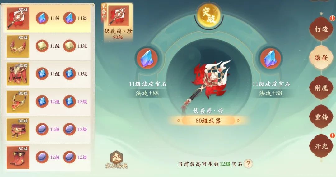 (2)消耗宝石或元宝进行突破,可将宝石从11级突破至12级,突破效果持续30天