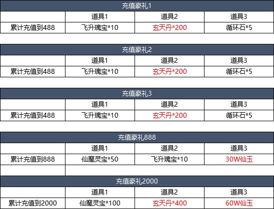【活动简介】活动期间累计充值达到指定金额即可领取惊喜礼包!