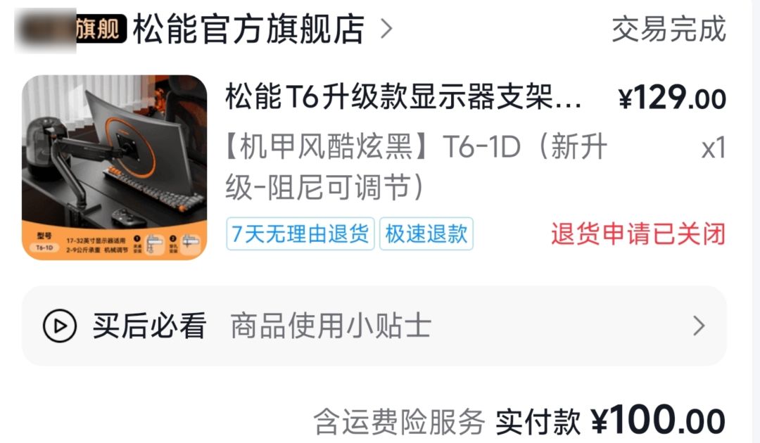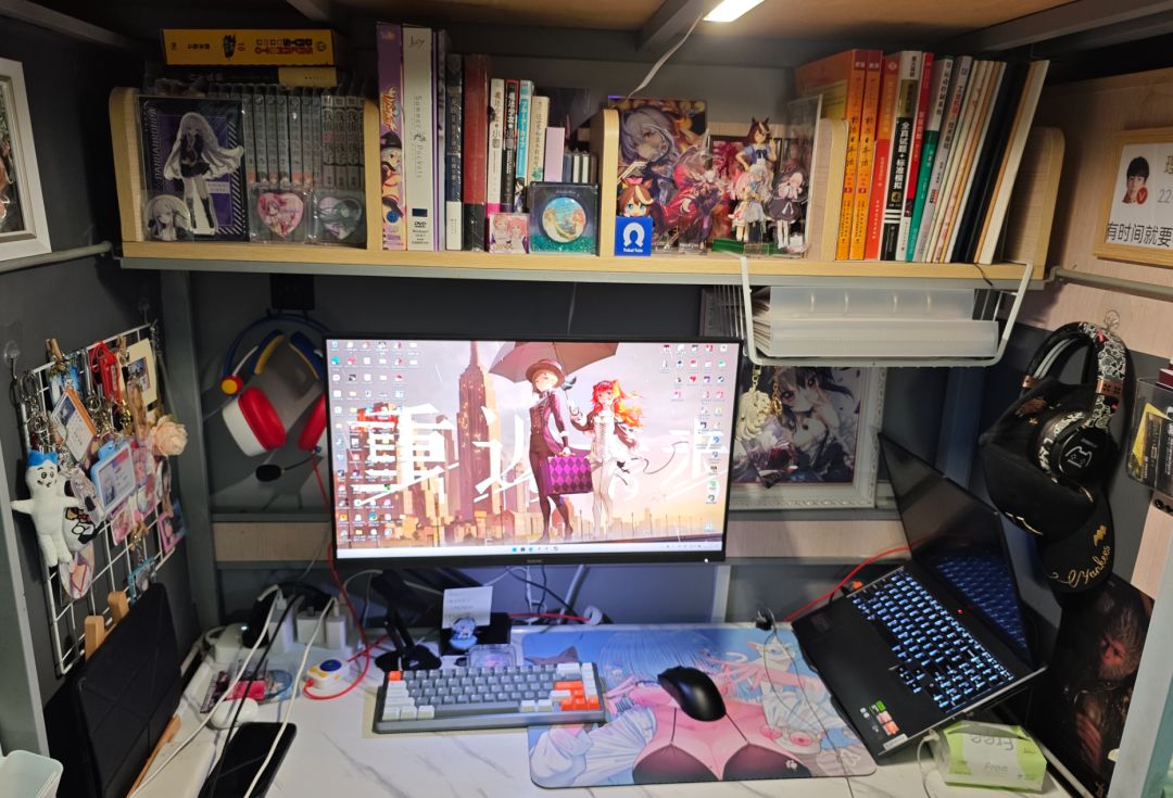 第三个介绍我的显示屏和机械臂吧,显示屏本来是买来玩3A的,结果打fps也正好用上了。新入学的,喜欢打游戏的小登们一定要在宿舍买个显示屏,真的太爽了。好后悔没有早点买,果然大就是好。如图就是我的显示屏和机械臂,因为都是第一款,没法做横向对比,但我都很满意,盛色的买来以后一直都很好,没有漏光等等的小毛病。