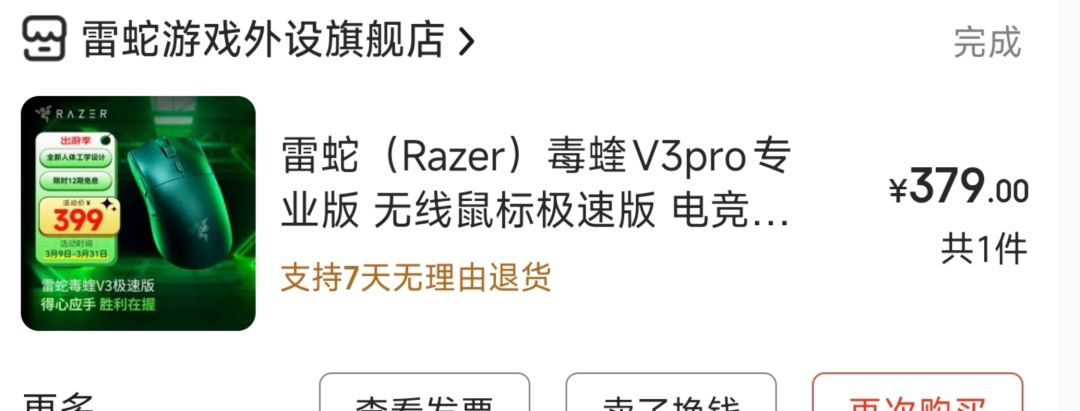 然后一直到了大三,入坑了瓦(万恶之源),我觉得有线的g102真的有点鸡肋,再通过朋友的推荐,就入手了这款雷蛇的毒蝰v3pro的极速版,因为专业版实在太贵了