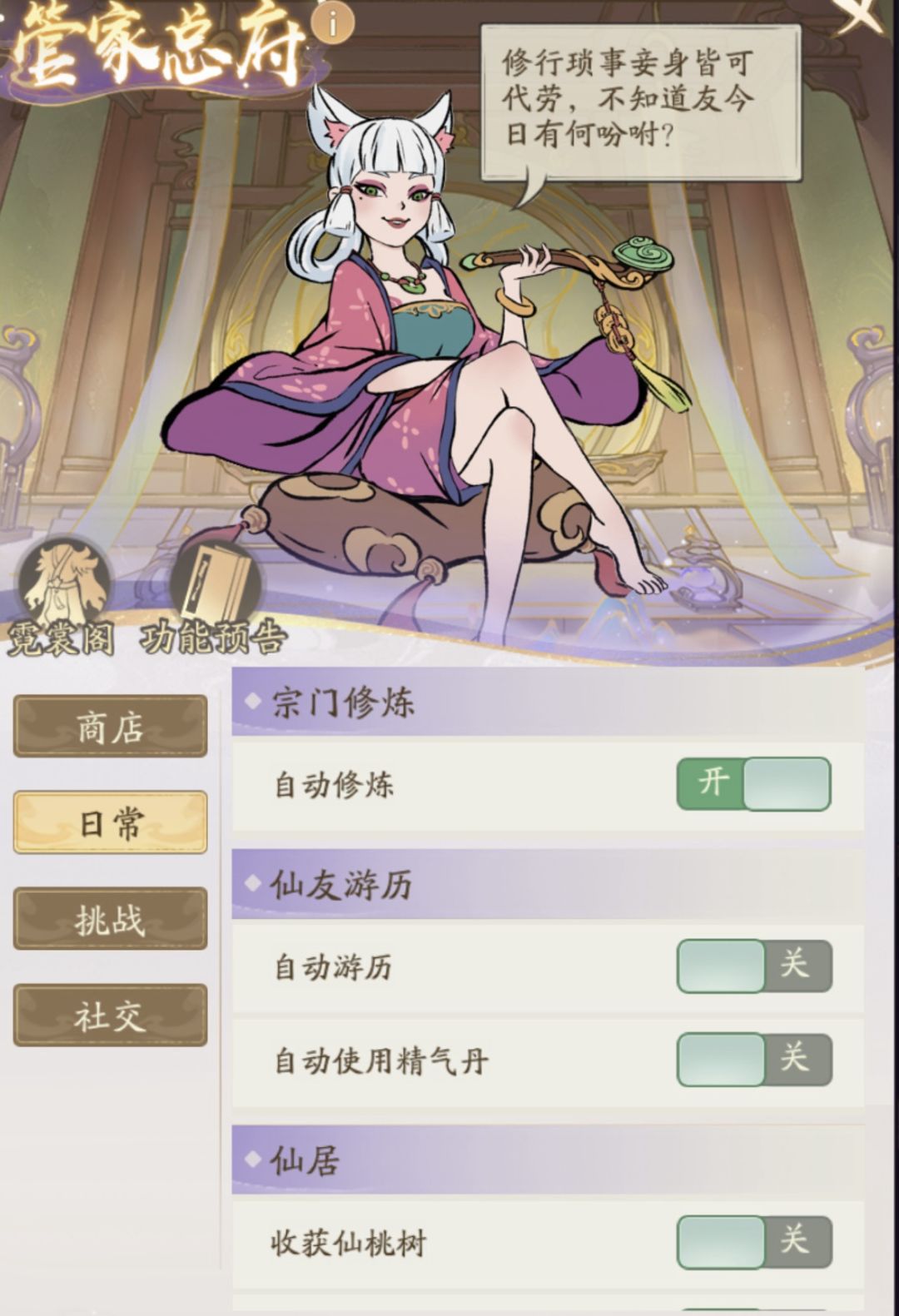 3、“师傅,今日训练已完成!”老伴娘管家新增宗门修炼托管功能,道友可安心探寻飞升之道。