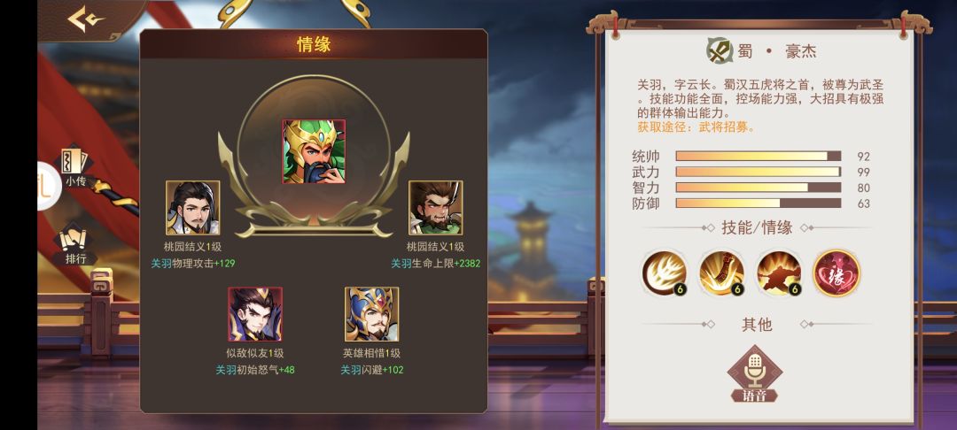 笔者从第一次玩掌中三国选择关羽,直到现在依然将关羽做为主力阵容上阵。关羽的光环弥补坐骑技能,是玩蜀国阵容的首选武将,笔者对其技能特点分析如下: