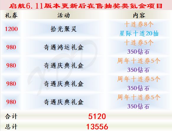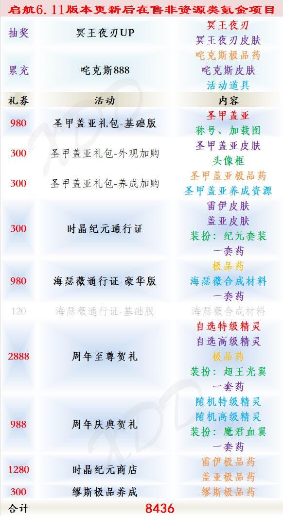 启航6.11更新后在售的非资源类氪金项目