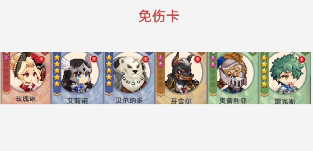 贝尔纳多:四星可以免伤3次但每场仅限一次,作用同上(初始二星卡前期在没有玫瑰的时候可以拿来顶一顶)