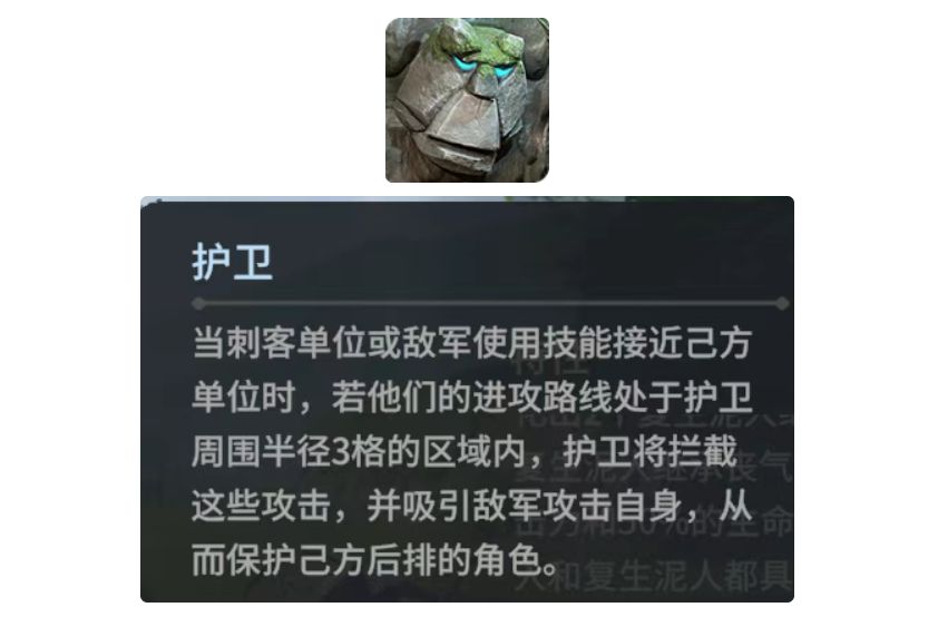护卫单位(一般为坦克、前排肉盾)具备高生存能力和控制技能,可阻挡切入单位(如刺客、突进战士)的突进路线,保护后排并限制其输出空间。