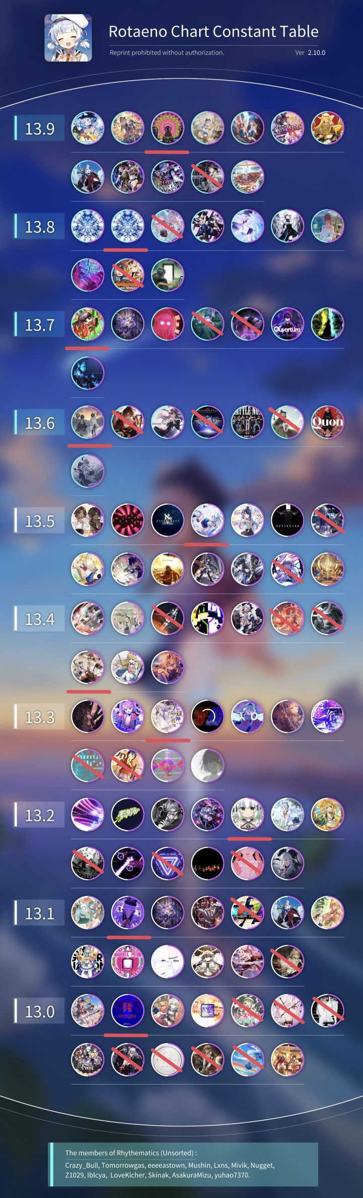 13.9:13.9的最难曲应该有很多人不一样,比如新出那两个就挺难,但是我还是给到了Stage 5,因为其他的都给我一种能解的感觉,但Stage 5给不了,因为实在是太抽象了。嗯?你问为什么没有竹,那是13.7