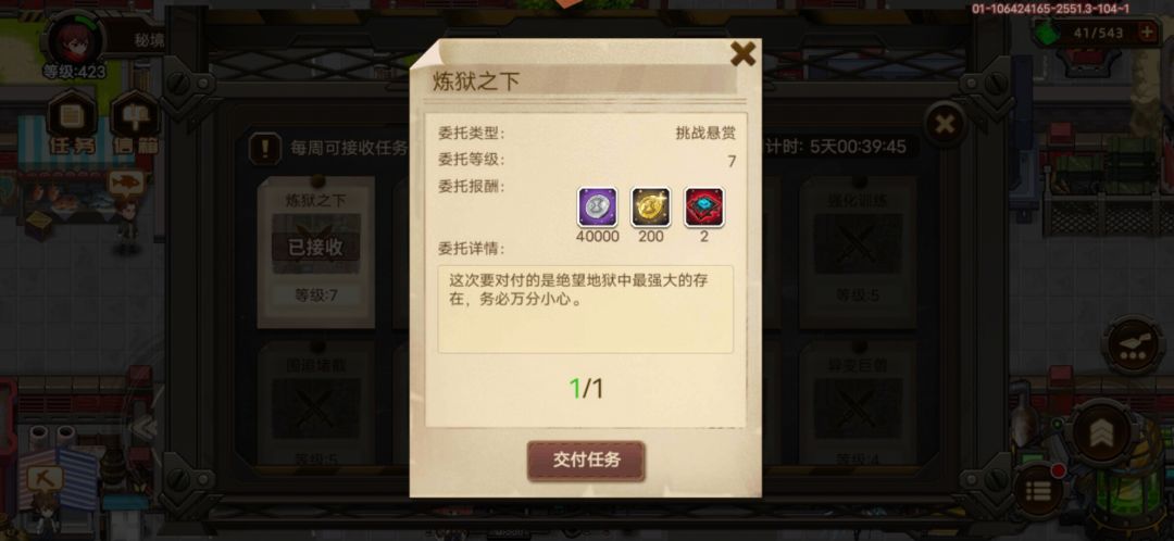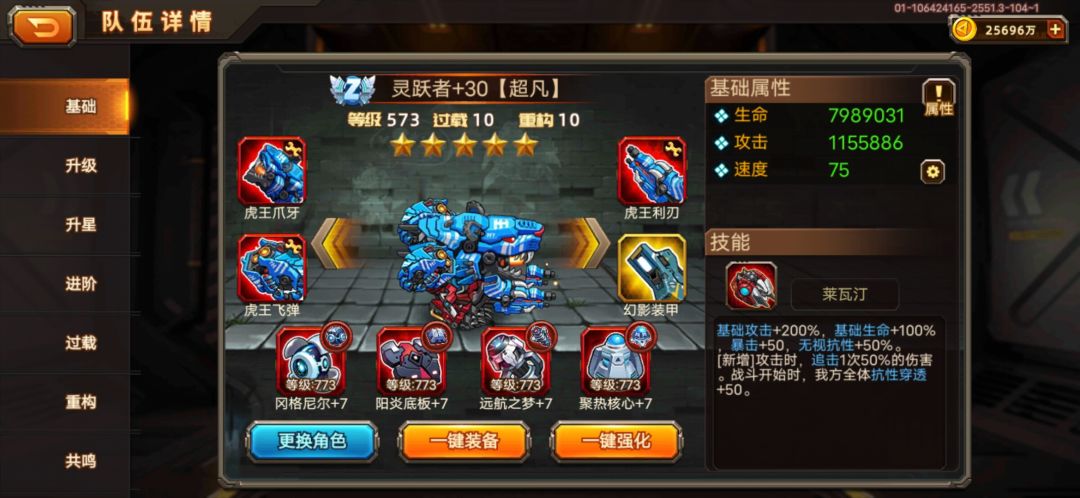 怼了一下午才发现,伤害不够,最好还是第七回合结束战斗,索性把豪虎撤了,米娅天启换解放,用猴炮。打了好几次,最后打剩丝血!!?原来是我的攻击不够,那样的话,只能提升等级了,原来416提升到423级,攻击1155886就过了。点了423-416=7*248=1736个体力丸子,手都酸了。