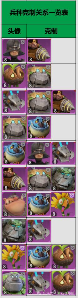 最后以一张兵种克制关系一览表来结束今天的攻略吧,各位领主们,我们明天再见~