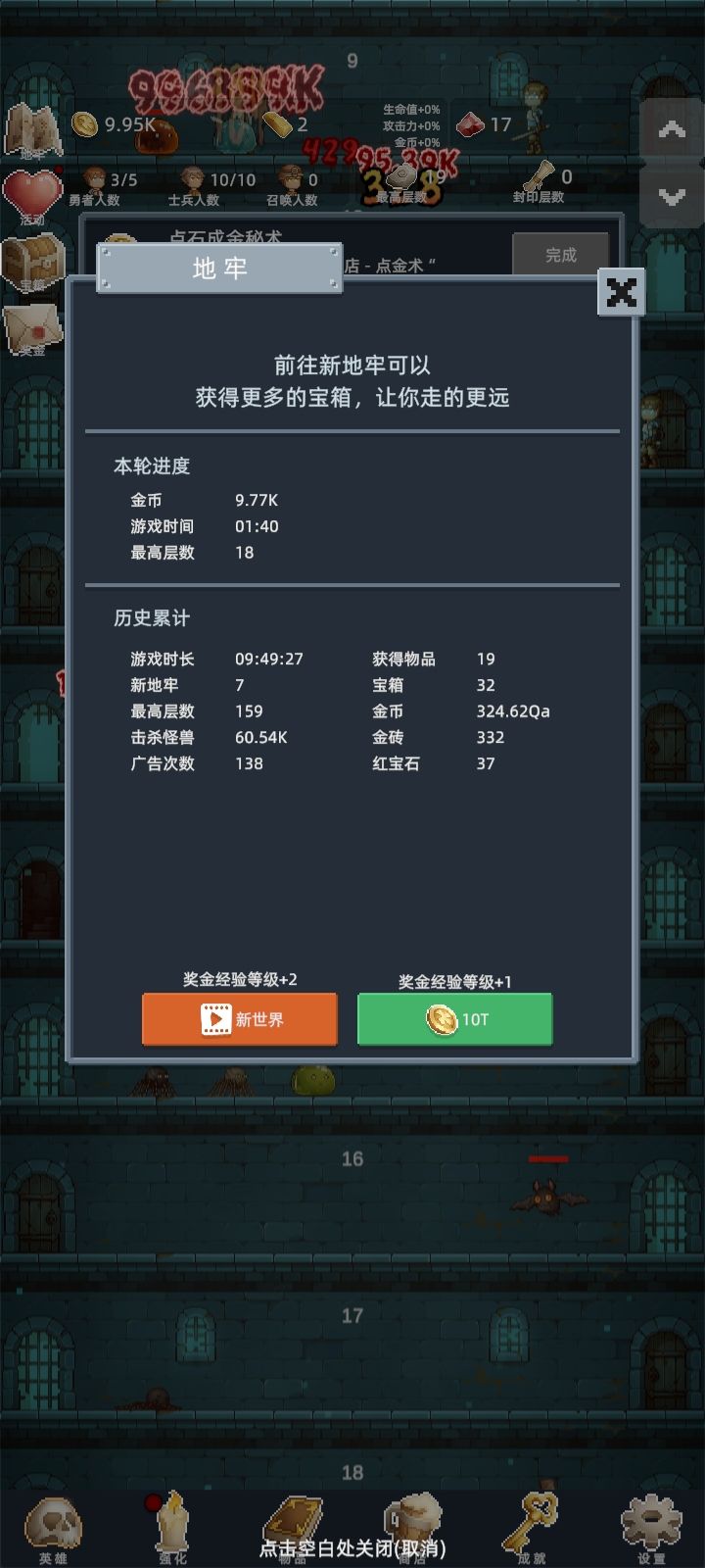 金币分配,针对新玩家前3轮转生不建议升级士兵,只用做【开士兵和升级勇者人口和士兵人口】。打不过去就【升级勇者】,勇者等级上去后【升结晶与魔晶】。