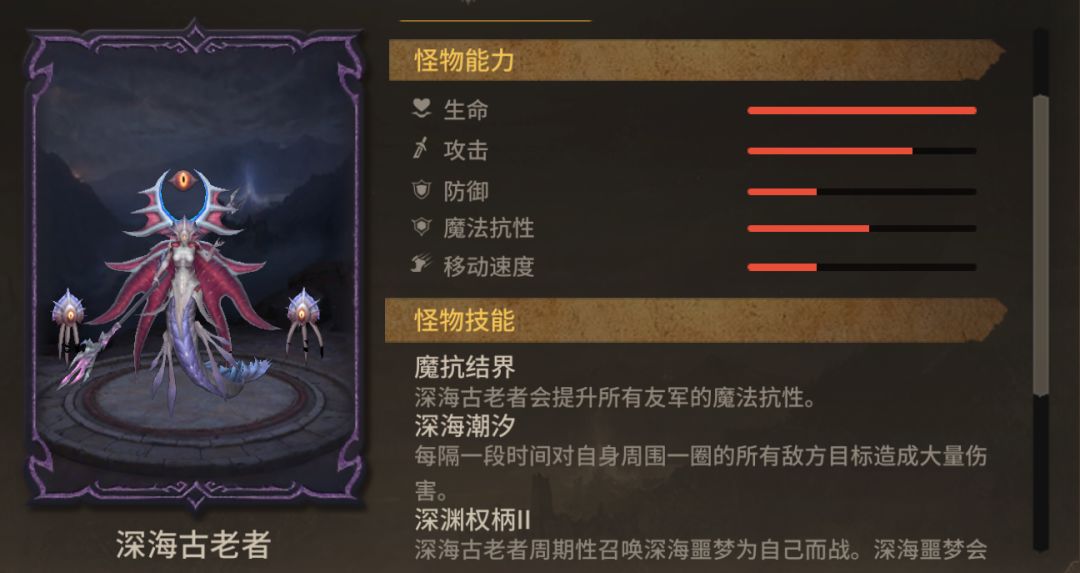 相比于21关,22-24关的地图场景、核心打法没有改变,但小怪、BOSS的数值显著提升。深海古老者可通过“魔抗结界”来提升友军魔抗,这关一般是用射手英雄挑战。BOSS在场时会在中路持续召唤“深海噩梦”,并且会周期性进行范围攻击,一般要在BOSS近身前将其消灭;BOSS在使用升华后,会普攻3个目标,所以所有高台位都要有足够的血量(建议高于3.5W,否则容易被秒)。