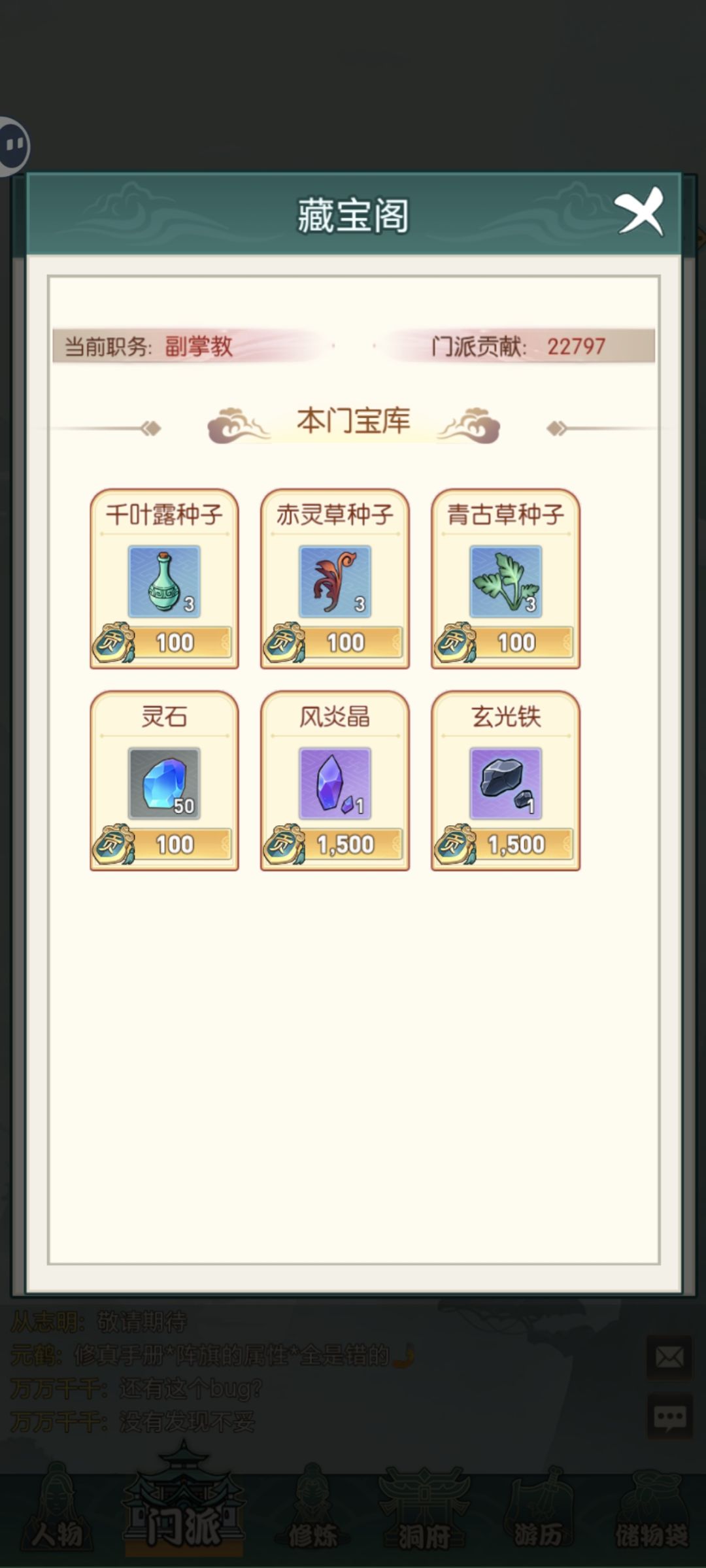 进游戏后十五天左右就能打到银素城,这个时候无论你之前进入的哪个宗门,兑换完功法之后跟结丹渡劫所需要的炼丹法后,直接进入玄月宗,早进入一天就是早毕业的一天,这里能用宗门贡献兑换四个首饰打造的材料,打造的图纸是破域那里的进度给的,10%的进度给一个首饰的图纸,记得结丹以后千万不要用灵石去买锻体的材料炼丹,加成太少了,前期灵石很重要,做装备的材料你没打通破域前只能靠灵石去商店的七层买,然后就是玄月宗里换,优先做项链跟手镯,做完这两个就可以无限制去偷破域的进度,打不过的怪就多打几次,有概率靠闪避偷过,但破域到100%的进度后,下一个图必须要做出四件装备才能过,等你做完四件装备后,再回头去其他门派补功法集齐那点加成,前期千万别挨个门派进,这也是版本陷阱。不懂的就进群问问,上面的各种截图自己好好看看