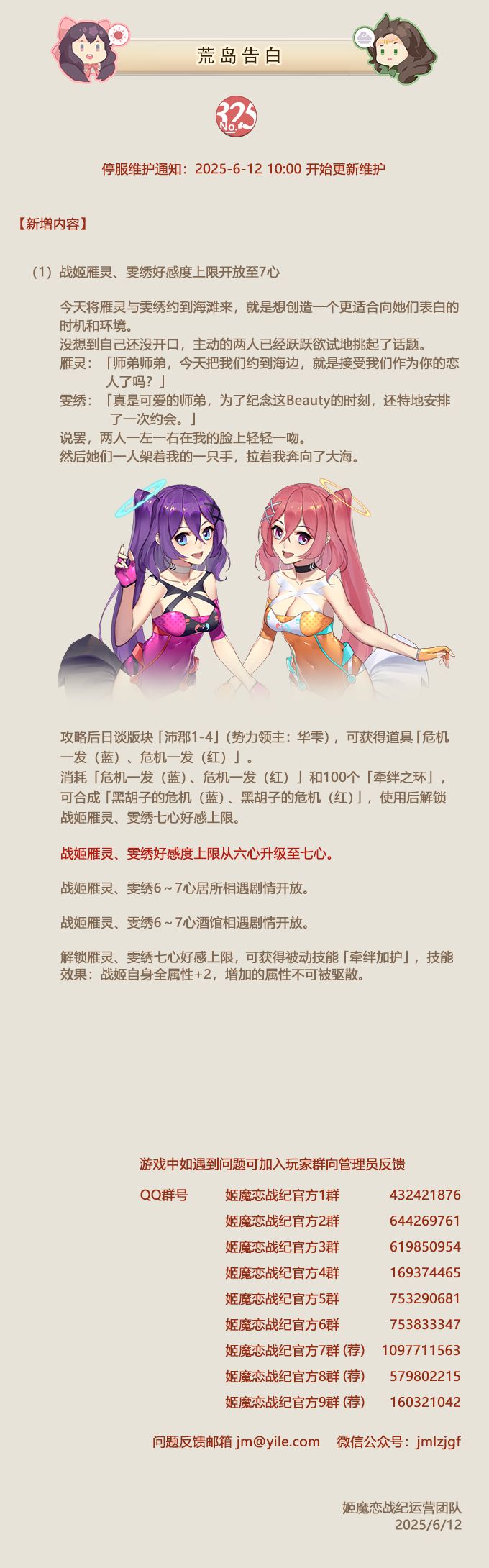 No.325 荒岛告白《姬魔恋战纪》06月12日更新公告