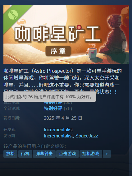 感谢大家的支持,自首曝 4 个月以来,《咖啡星矿工》的愿望单目前已经突破 1 万!