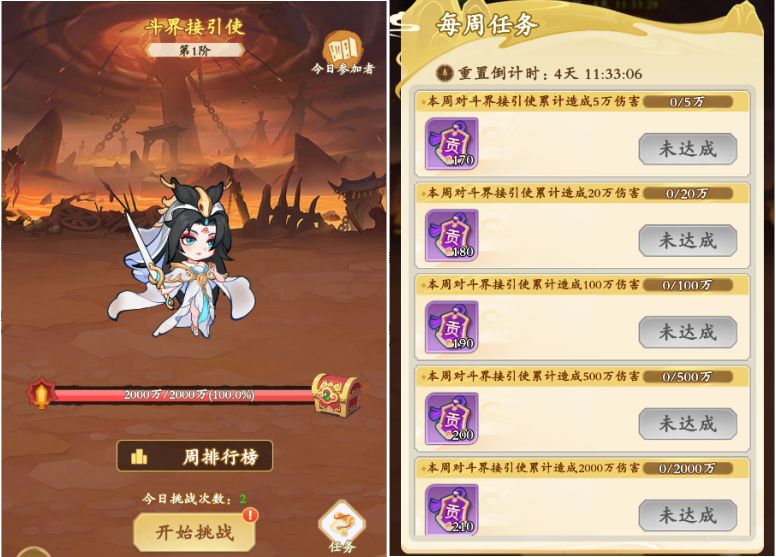 在仙盟中每日还可以进行挑战人物,挑战完成后在任务中可以根据造成的伤害领取贡献奖励。