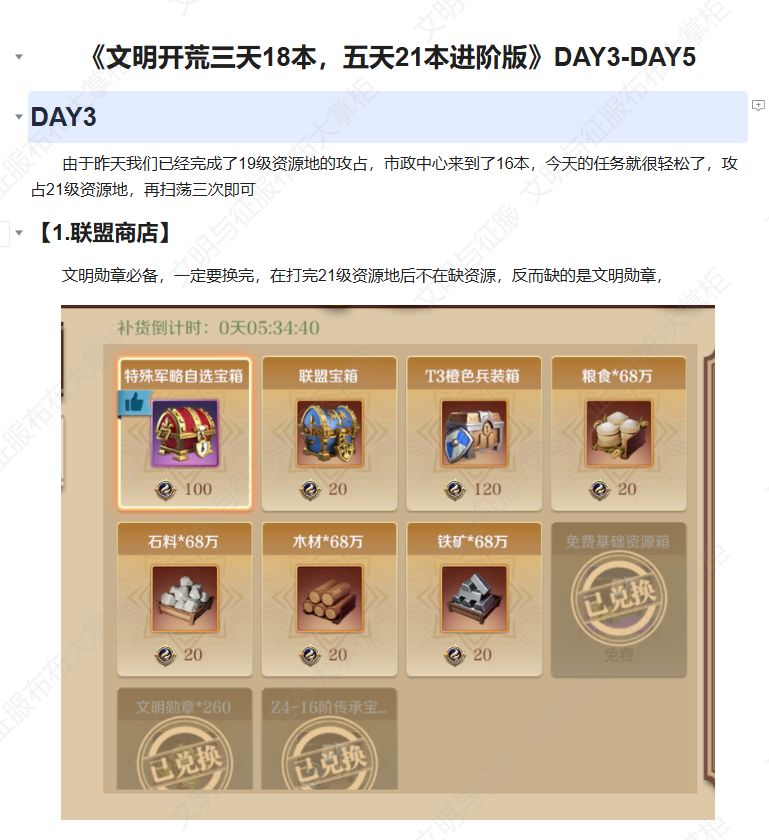 《文明开荒三天18本,五天21本进阶版》DAY3-DAY5