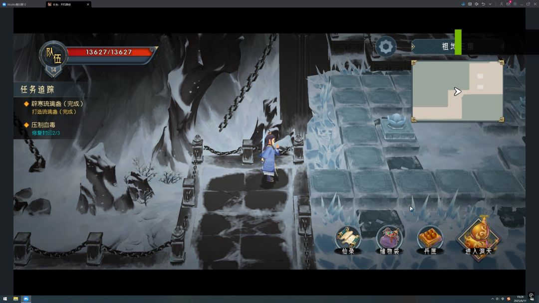 找到公孙锻制作好琉璃盏,主线任务十三完成。之后我们前往祖地三层,一进门我们就碰到三只冰蚂蚁,这几只蚂蚁伤害还挺高,我们直接用木2队打即可。