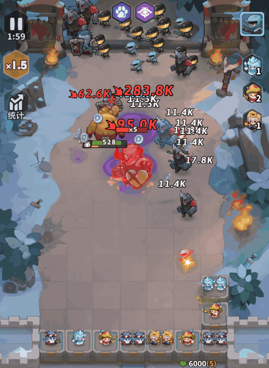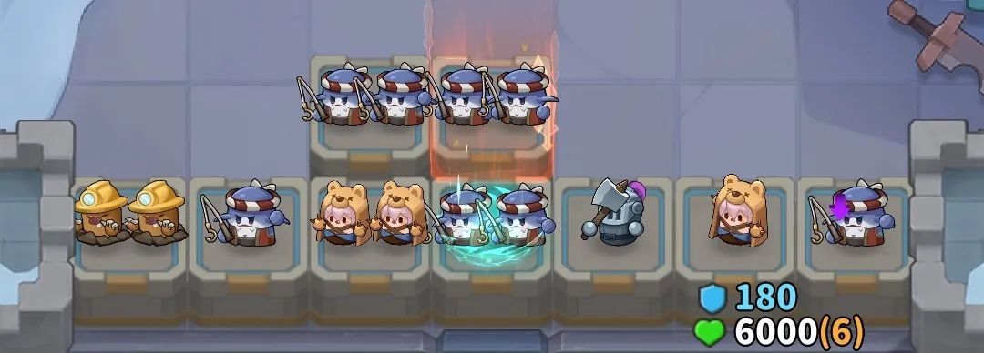 前期怪物数量不多时,安妮的召唤熊有着非常强势的表现,推荐将地鼠与骑士优先合成升星,地鼠与骑士在场上各保留1个即可。