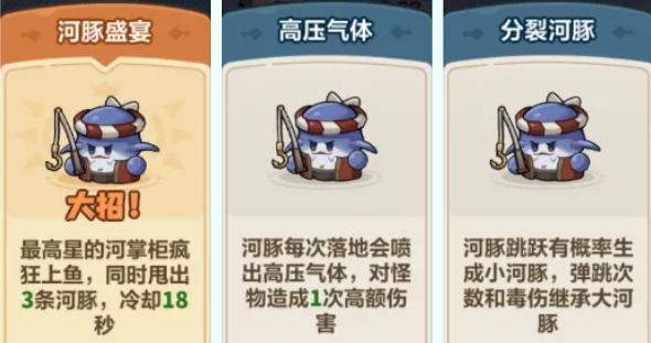 强化词条推荐优先选择大招词条【河豚盛宴】,【高压气体】,【分裂河豚】等,增加河豚的爆发毒伤和攻击范围。
