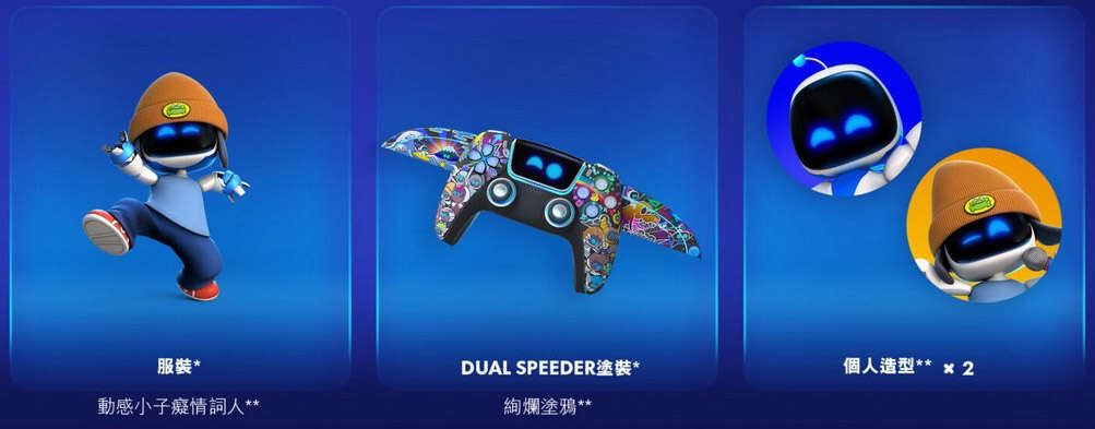说完了价格,我们再来看首发特典。实体预购特典分别为海报一份。“痴情词人”服装提前解锁资格。Dual Speeder“绚烂涂鸦”涂装提前解锁资格。ASTRO个人造型提前解锁资格。