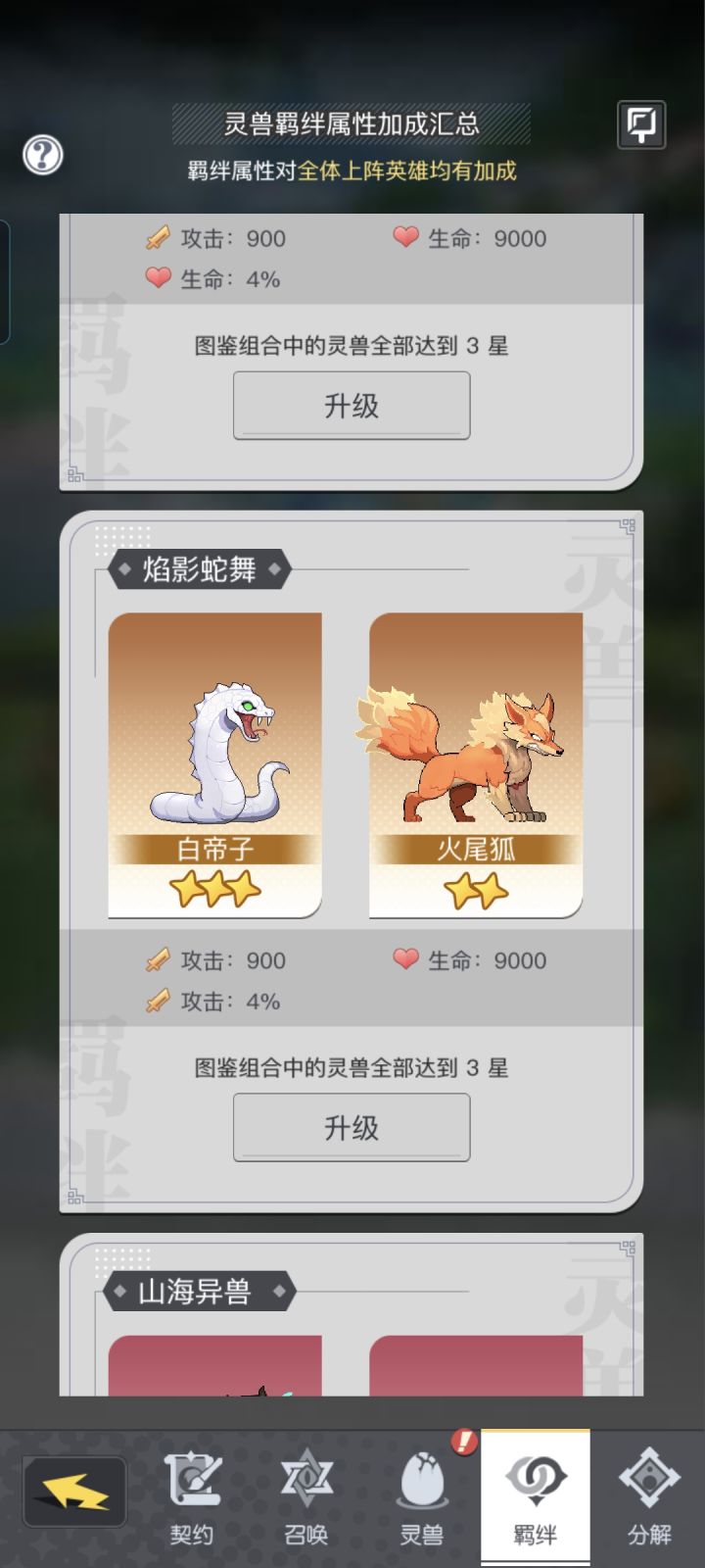 两个灵兽加羁绊相当于1600点数加了11w战左右,单升级130级能升6次多,也就是15w+战力