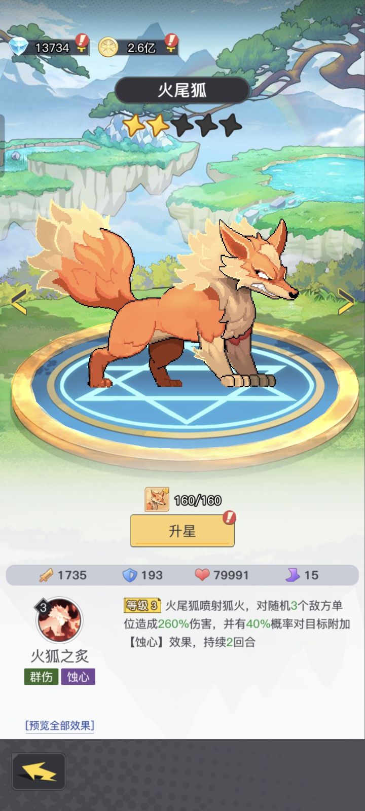 单升2-3星狐狸,160个碎片,加了4w战力,羁绊加了3.5w战力,160个橙色碎片对应800点数