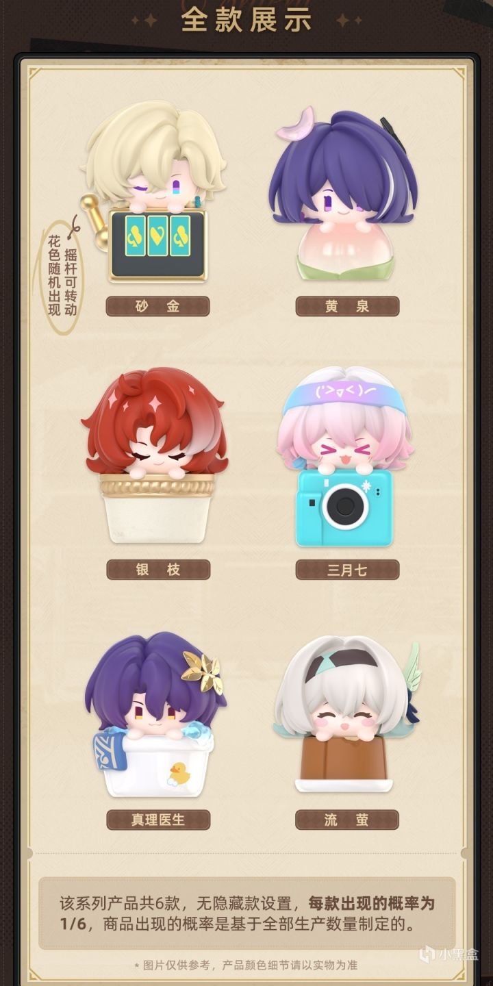 贩售形式有盲袋单抽和全套端盒两种哦。盲袋单抽充满了惊喜与未知,单款随机发货,让你享受拆盲盒的快乐,但不能指定角色和款式哦。而全套端盒就很贴心啦,一次集齐6个角色,6款不重样,并且购买整盒还能额外获得官方店铺限定特典——入梦池试轴器,简直太划算了!