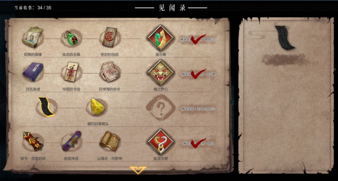 Roguelike游戏第二个特点是进程单向性,而《暖雪》的故事也是线性的,玩家按照章节进行游玩,依次体验每一个章节,直至最终章。游戏采用了在Roguelike游戏里很常见的碎片化叙事手法,即将一些关键的剧情信息藏在随着游戏探索不断获得的物品之中,让玩家根据这些物品推测出相关的剧情,且随着重复的游玩会得到一些意外的收获(在这里笔者就不详细赘述,以免剧透)。