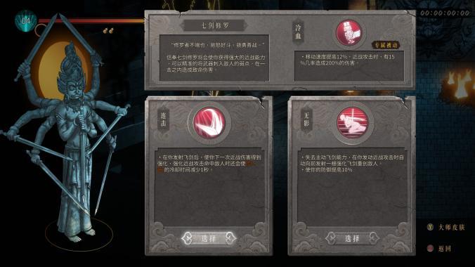 Roguelike游戏第三个特点是不可挽回性,《暖雪》也遵循了这个机制。在死亡之后,主角便会丢失之前的所有进度,只能重新进行游玩。但是同其他的Roguelike游戏一样,在每次死亡后主角都会得到一些特别的能力。《暖雪》则设计了一套独立的技能树系统,玩家在死亡后可以对“命”、“杀”、“练”三个基本技能点进行相应的升级。所以对于“手残”的玩家可以说是相当友好了,只要多“寄”几次就会变得更强,不会存在打不过的问题。