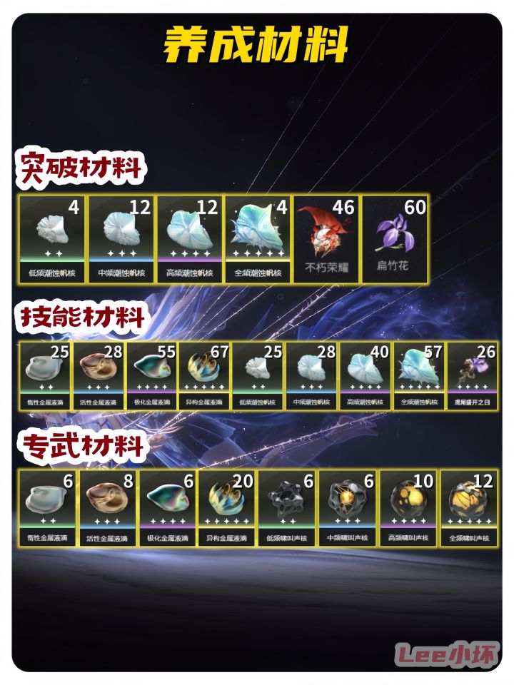 养成材料 武器推荐 声骸搭配 技能加点 配队推荐 共鸣链推荐