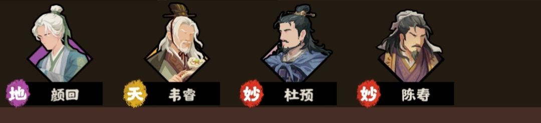 由于杜预家仆的出现,双武库极大的提高了这个名臣的强度,与韦睿配合时,基本上杜预必出一辆投石车,另一个器械任选。而且由于韦睿军规方面的优秀数值,投石车造成的伤害很高。这3个里面欧冶子是最优秀的,如果你有专武可以开家仆,陈寿主要靠林枪,林步,诸葛恪的过牌,顾恺之纯粹用韦睿的高数值来压一压战损,并有一定过牌能力。不过杜预阵韦睿刷流寇时间比较长,游戏体验可能比较差。