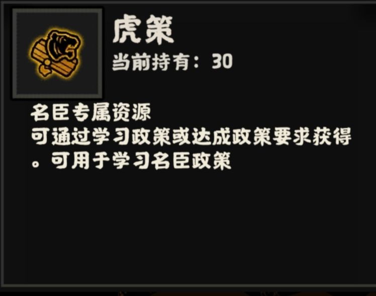 虎策是目前韦睿专属的特殊资源,用于实行韦睿的政策。