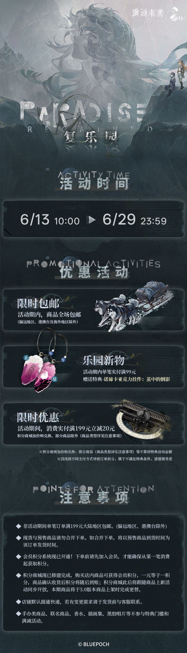 ②:积分商城加价购兑换、手办类商品、联名商品、插画集、黑胶唱片、香水将不参与满赠特典活动。