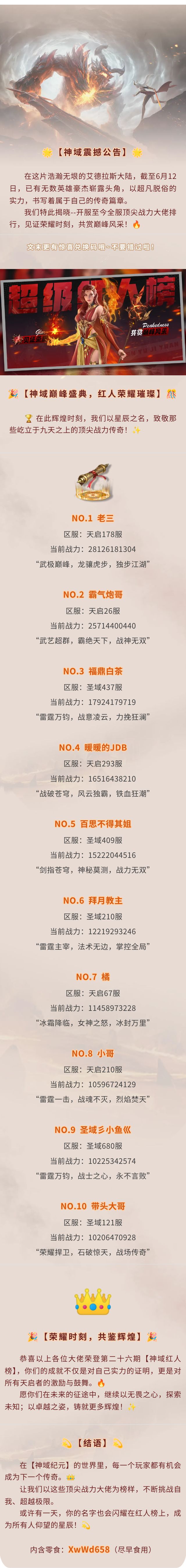 【神域纪元】红人榜丨第二十六期震撼来袭!