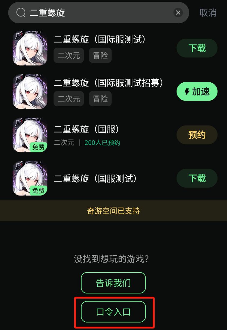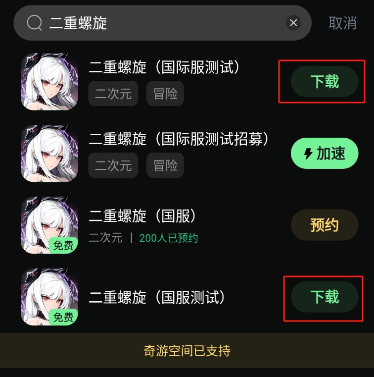 奇游内搜索【二重螺旋】,即可下载游戏安装包(国际服跟国服都可以噢~)