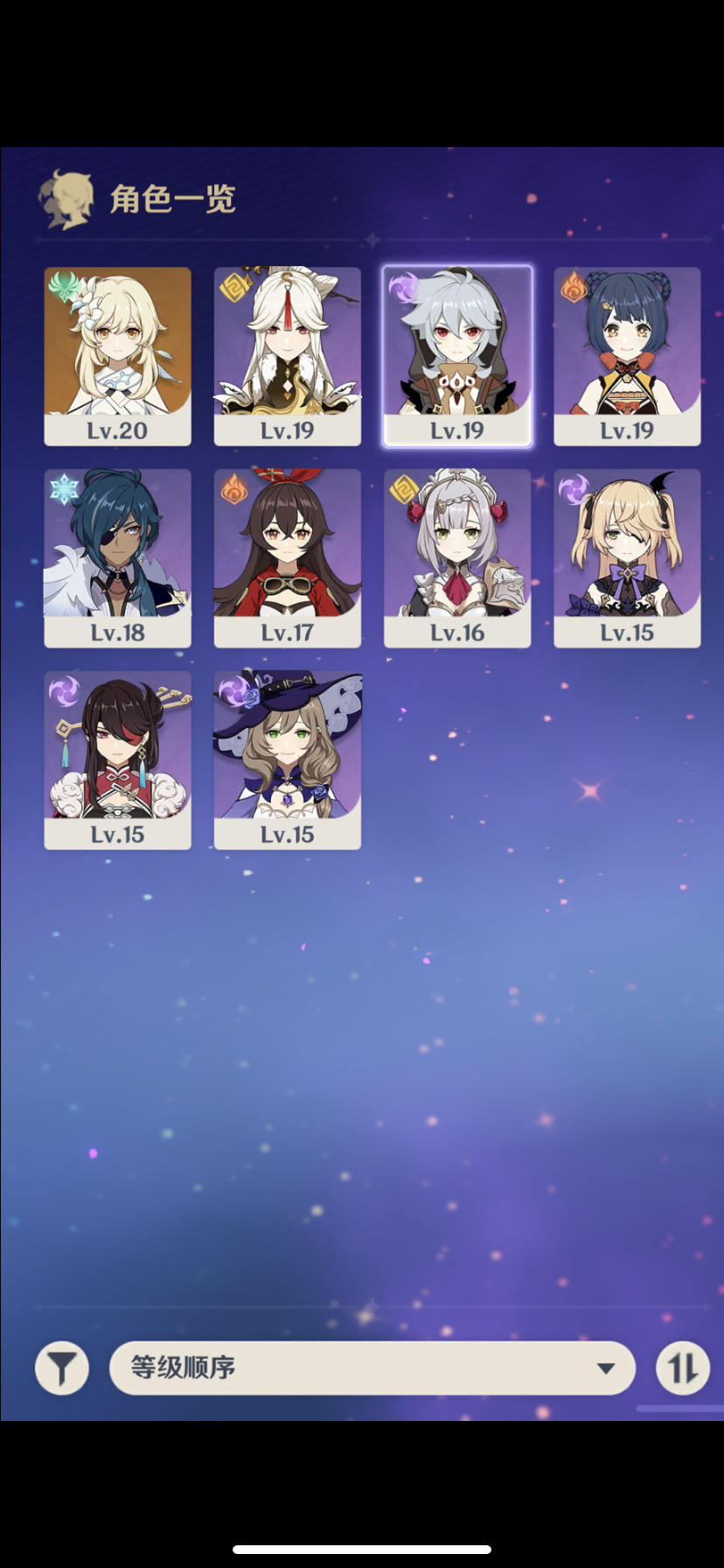 第一个号主角和凯亚一命,其他全部0命,雷泽凝光玩着还挺顺手的;