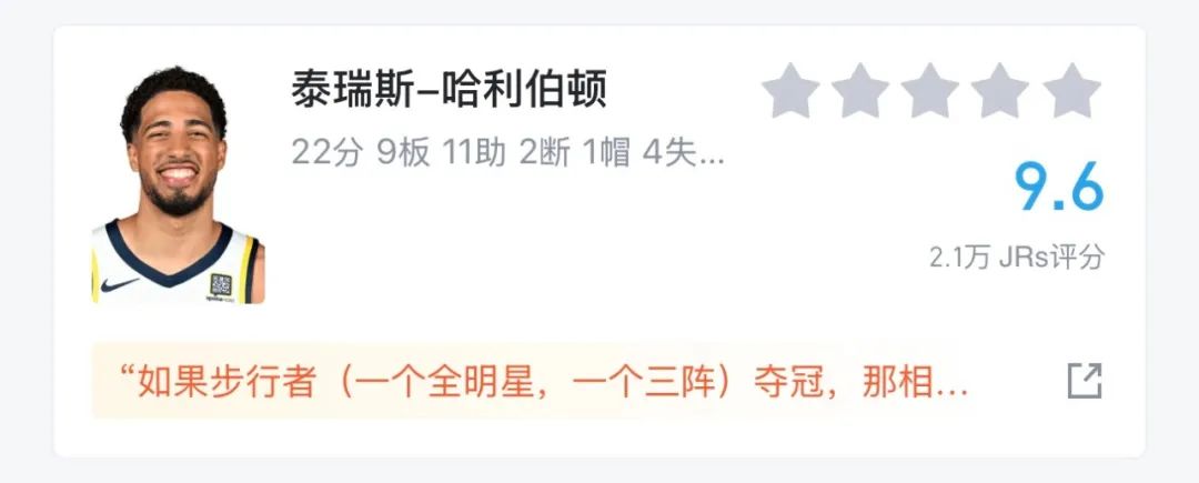 作为虎扑公认的“最被高估的球员”,哈利伯顿用常规赛的表现告诉世人他很有可能被高估,但又用季后赛的表现展现出“被高估”这事有点不可能︿( ̄︶ ̄)︿神鬼莫测的空接传球,接投一体的灵活跑位,以及与年纪不相符的超绝大心脏——0.3秒压哨绝杀,当年米勒的绝杀见血封喉,如今我剑也未尝不利!
