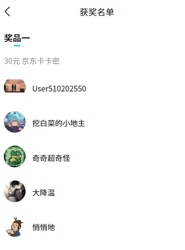 以下为本期活动获奖名单: