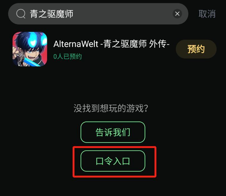 第二步:安装好奇游手游加速器后,搜索【青之驱魔师】找到口令入口,输入兑换码【AW】领取会员时长