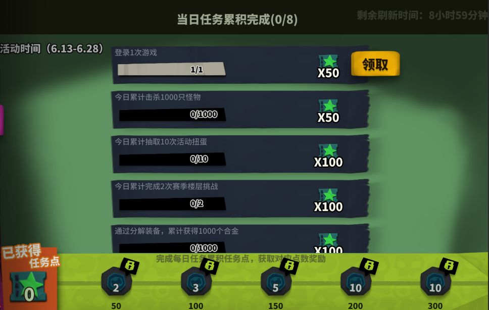 每日登录游戏领取道具资源奖励