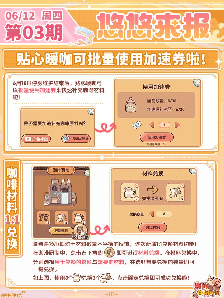 贴心暖咖可以1:1兑换材料啦!再也不用担心材料数量不平衡难以研制咖啡了~