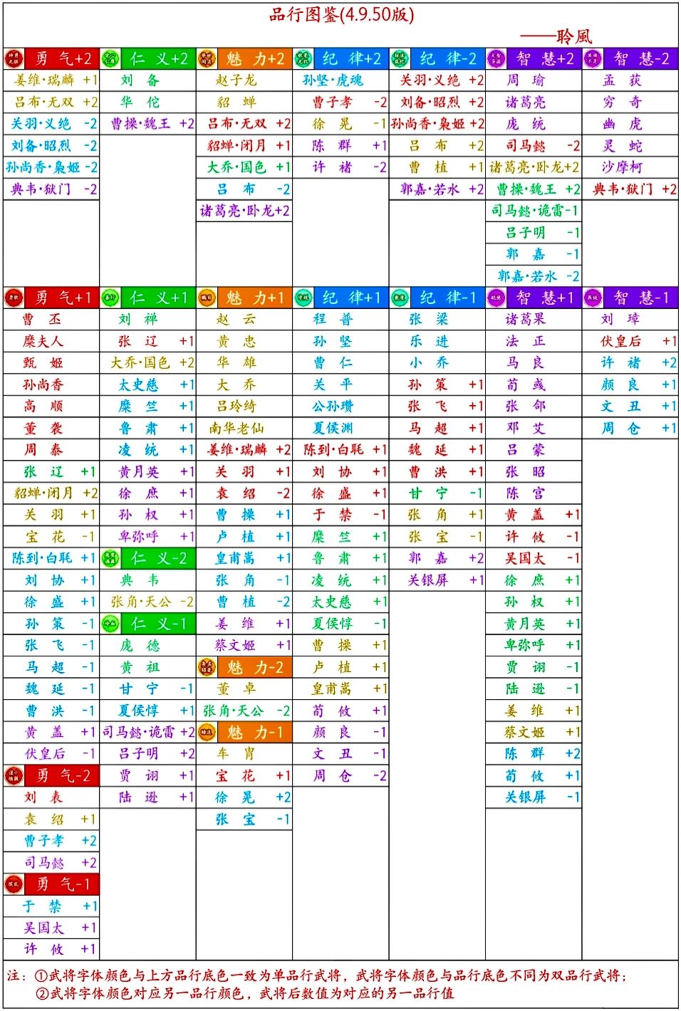 武将品行值图鉴