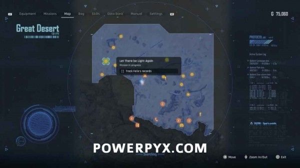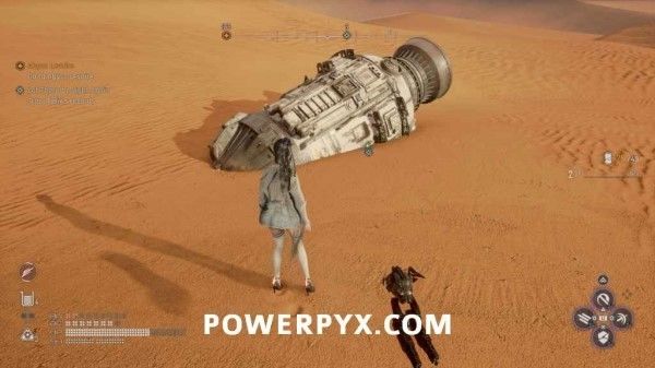 与书架互动后会解锁一个位于大沙漠西侧的新目标点,前往标记位置找到空投舱,拾取旁边的文档。