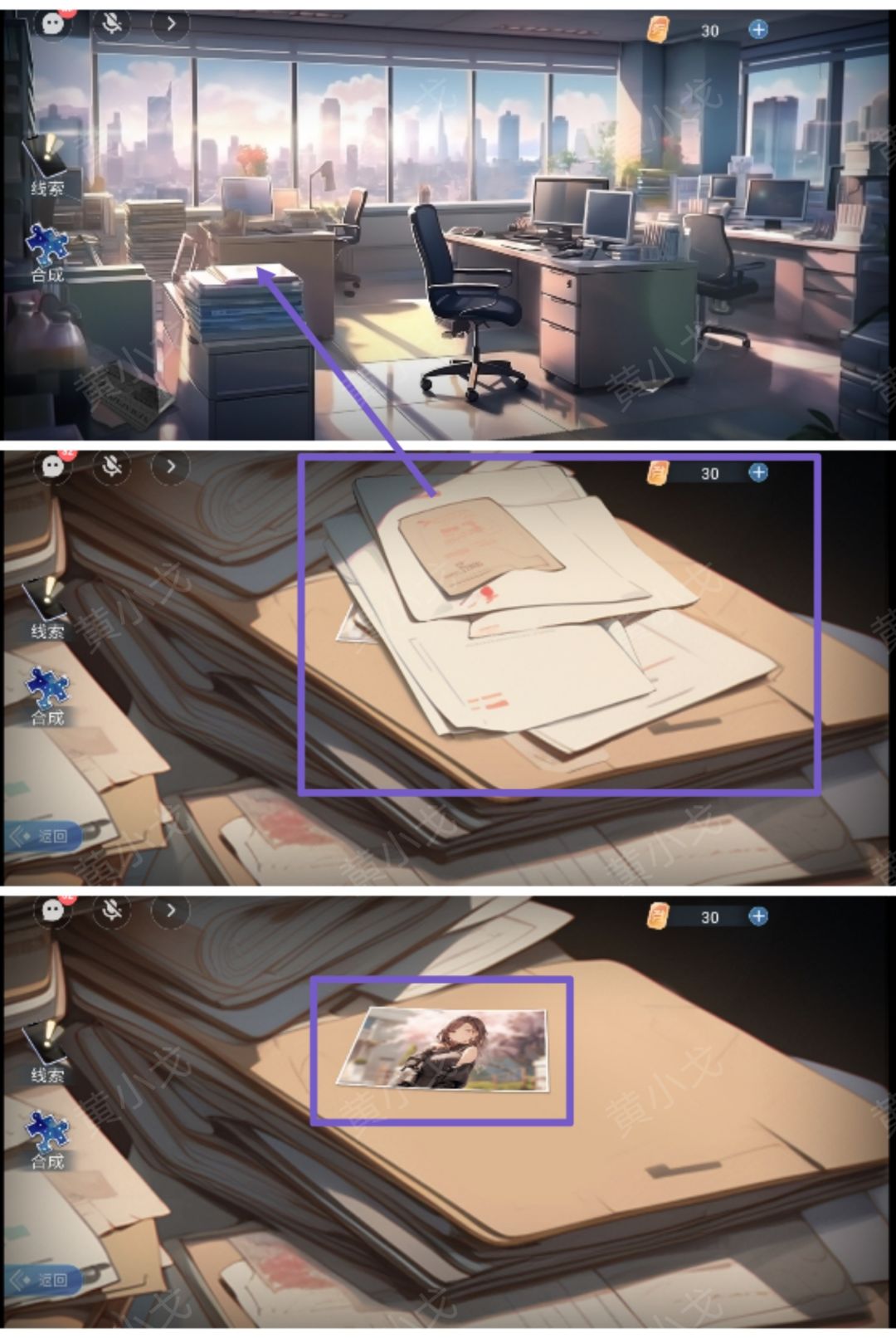 1.点击左侧桌子上的文件堆,收集〖照片〗